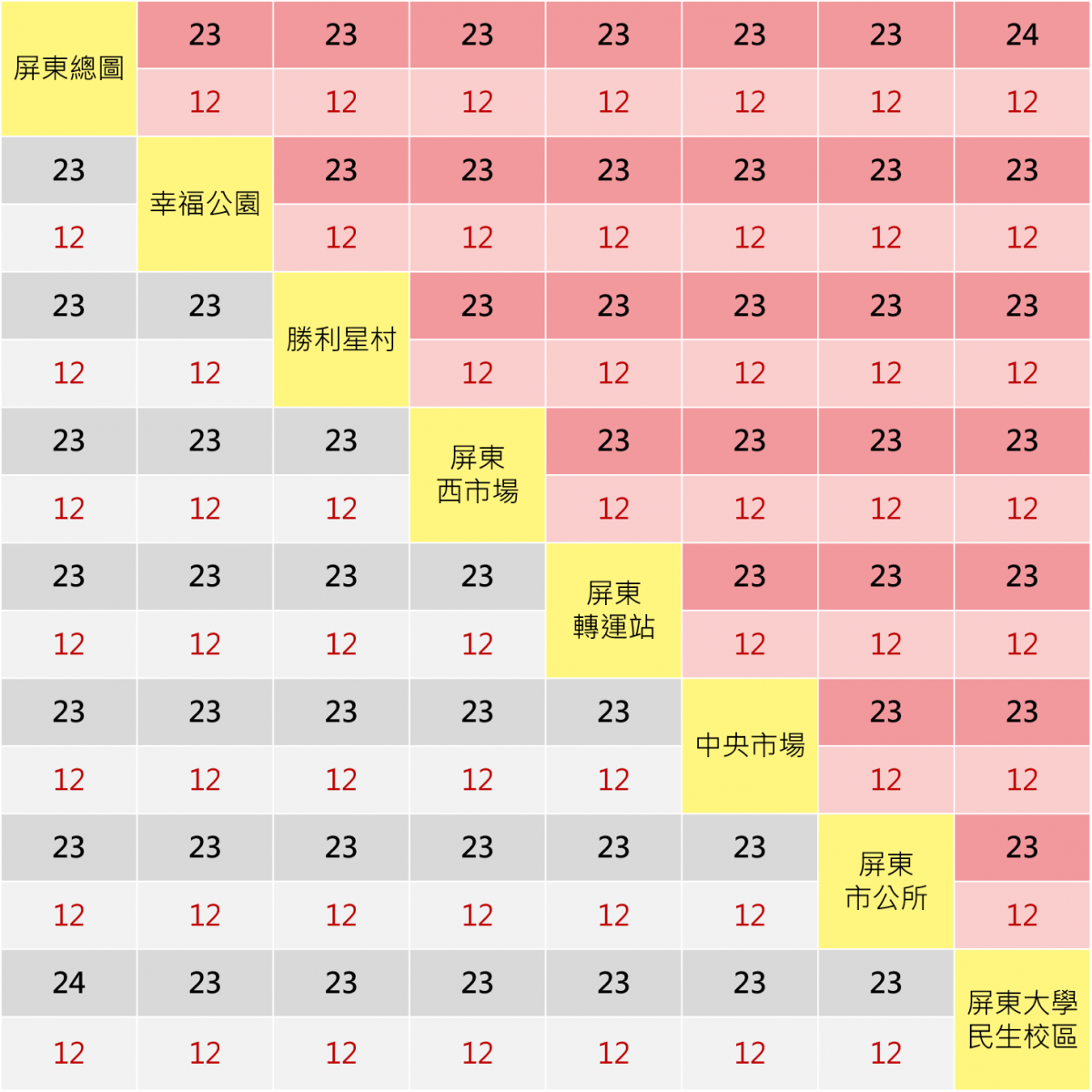 上方為電子票證付費(fèi),下方為現(xiàn)金付費(fèi);黑色粗體為全票,紅色細(xì)體為半票