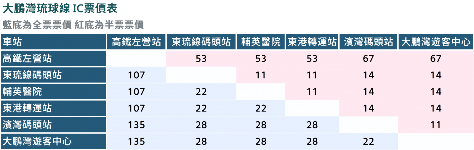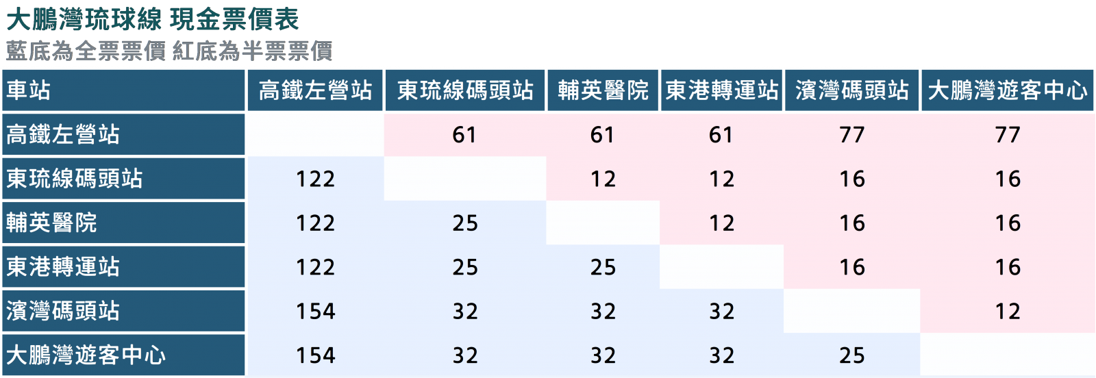 大鵬灣遊客中心站→濱灣碼頭站→屏客東港站→東琉線碼頭站→高鐵左營站