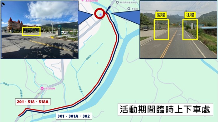 【518A】〔文明路口〕站改至「四重溪溫泉區(qū)停車場」供乘客上下車。