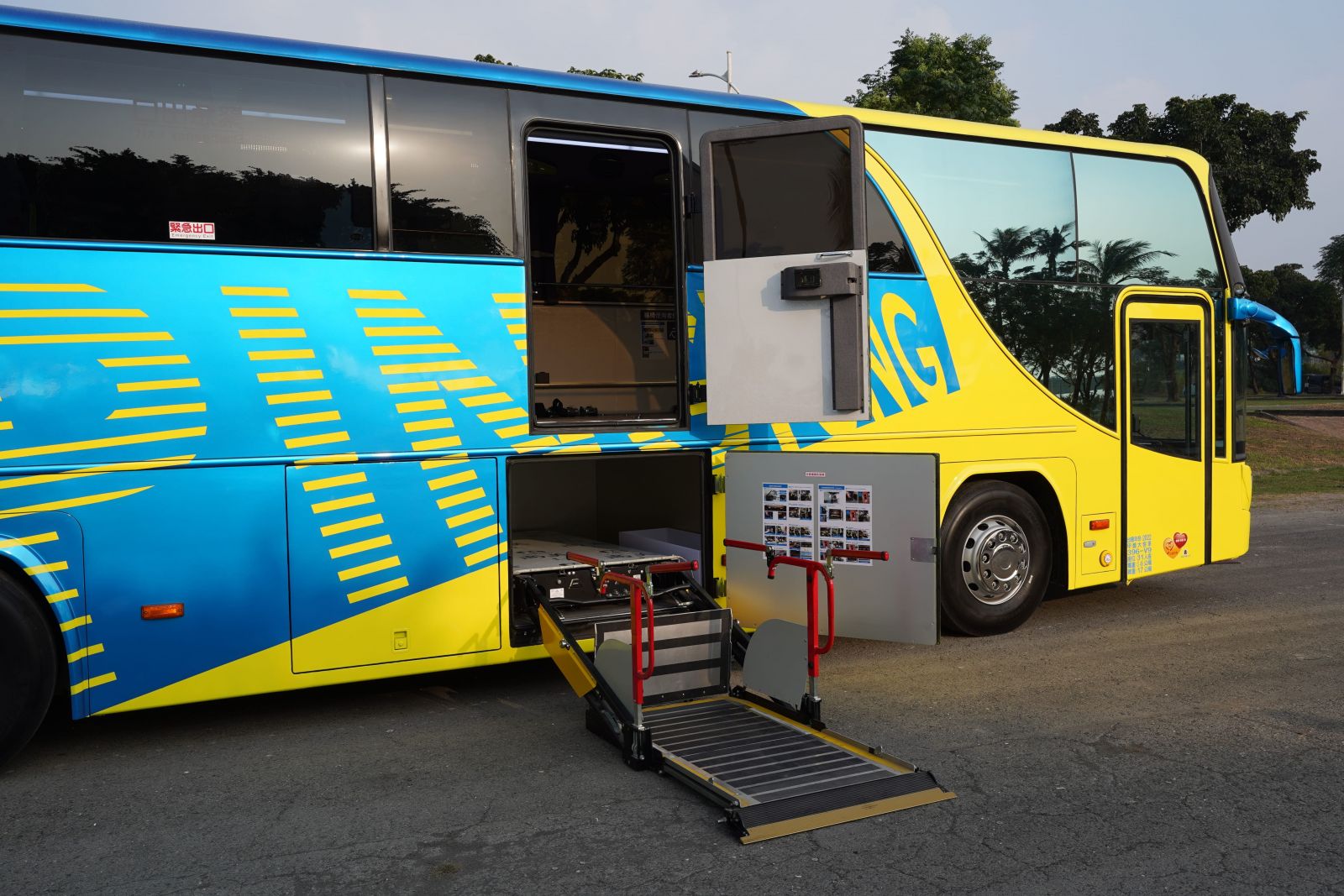 (二)配有1組符合政府相關規(guī)範之身心障礙專用輪椅升降設備:乘載重量400kg、升降平臺尺寸:141公分x 82.5公分,故障時可改手動操作。