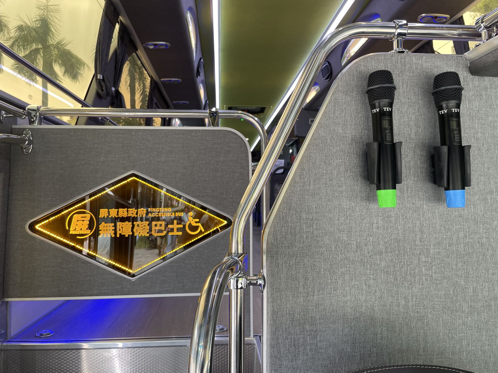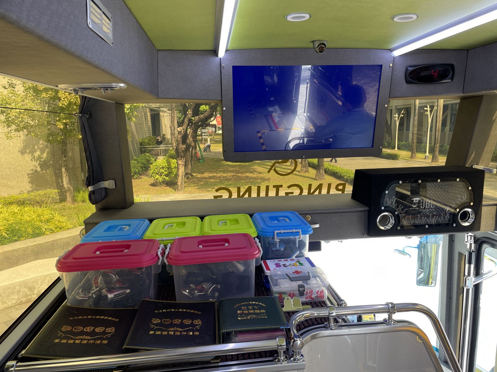 (三)影音設備:車內(nèi)前方1個37吋液晶螢幕、中/後方配有3處22吋液晶螢幕、DVD播放器1臺、卡拉OK主機及音響喇叭、無線麥克風。